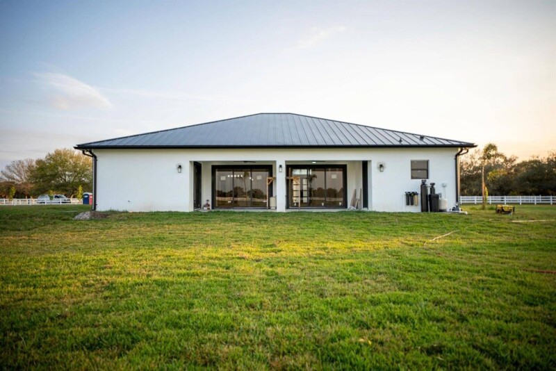 A new construction home nearing completion. In a ready to move in condition within a month. Finalizing the last construction details, and final inspections. With more than 5 acres of land, in an equine association allowing horses and farm animals.