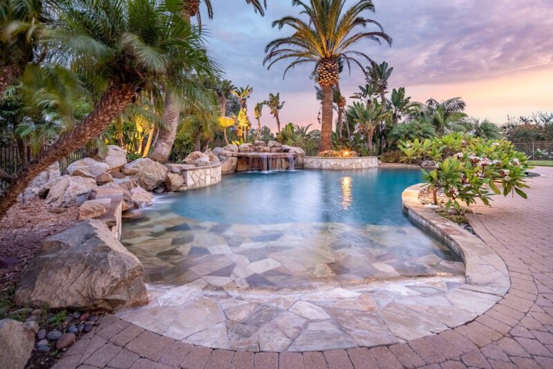 Rarely available..... located in the prestigious and desirable guard-gated community of Rancho Pacifica on a private and quiet location on 1.28 acres of beautiful and lush grounds. Possessing the enviable architecture and style of a single story Mediterranean-inspired villa. The easy flowing floor plan includes a large gated entry courtyard, welcoming foyer, formal living room with fireplace and adjacent dining room that overlook the sun-splashed pool with waterfall and spa through expansive windows and doors. The well-appointed chef's kitchen with large center island flanked in stone is detailed with all professional appliances, an informal dining area and full bar, wine cellar, that opens to the family room with fireplace, open beamed ceilings, built in cabinetry and “lift and slide” disappearing doors that open to the outdoor living pavilion. The living pavilion is large with full entertaining bar, heaters, summer kitchen and fireplace, the perfect venue for large parties, family gatherings or lounging and relaxing. The sumptuous primary retreat is located at one wing of the residence and encompasses an oversized bedroom suite with fireplace overlooking the pool, dual oversized dressing rooms, spa-like bath with tub, oversized shower, dual vanities. There are an additional four suites of bedrooms, all generous in size and well-appointed. There is a wood flanked library/office with builtins and a professional theatre. The back yard is an entertainers dream where one can enjoy the beach entrance sun-splashed pool, spa and waterfall, fire pit with seating and multiple dining, lounging and sitting areas. Full pool bath. Owned Solar. Outdoor oversized chess game. Six car garage with an abundance of storage. 8 cameras. Very private and peaceful setting. Close to all freeways, shopping, golf and country clubs and some of the best beaches in Southern California. Offered at $8,495,000.