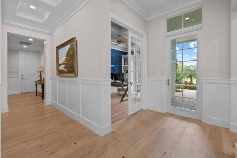 Situated on a private half-acre homesite in the prestigious gated community of Prado in Jupiter, FL, 19966 SE Gallberry Drive offers an exquisite blend of luxury, privacy, and modern elegance. This highly desirable Alexandria model with a Coastal exterior features five bedrooms, five and a half baths, a three-car garage, and over 4,900 square feet of thoughtfully designed living space, adorned with custom woodwork, high-end finishes, and designer fixtures throughout.
