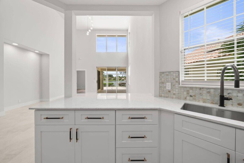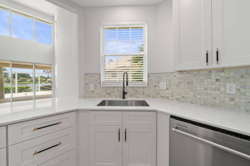 This stunning home boasts 3 bedrooms, 3.5 bathrooms, loft (could be 4th bed), den/study area, and 2 car garage. This renovated lake view gem features an array of upgrades; pristine new kitchen with large quartz island, new kitchen aid appliances, large downstairs master, spa-like bathrooms, decorative tile accent walls, 24x48 porcelain tile floors, modern interior doors, new light fixtures, plumbing fixtures, and chic stair railings. The loft and study offer versatile living spaces. The large screened in patio overlooks a lake, perfect for enjoying serene evenings. AC 2020, BRAND NEW ROOF & accordion shutters for peace of mind. This oasis is truly one of a kind. Situated in of Eagleton Lakes of PGA National, you're just moments away from top-rated schools, parks, and restaurants.