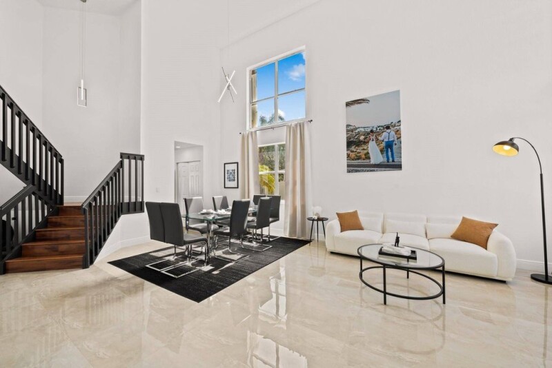 Exquisite Turnkey Home 4 Bedroom 3Bath in the spectular Gated community of Pembroke Isles. This home will dazzle you from the pristine tiles floors to the high end laminate floors, stunning kitchen with lots of storage, granite counters and a wonderful pantry a definite dream kitchen. The main floor has a formal living area, dining area, kitchen with eat-in area, family room, and guest room with full bathroom nearby. As you tour the upstairs of the home please note the beautiful size rooms and builtin closets. The Jack and Jill Bathroom was newly renovated. Check out the large and fabulous outdoor space! Ready for a Party. This Home is perfect has a Roof from 2018 and Accordian Protection. The community has a newly renovated clubhouse, basketball, tennis courts, and pickleball and more!!.