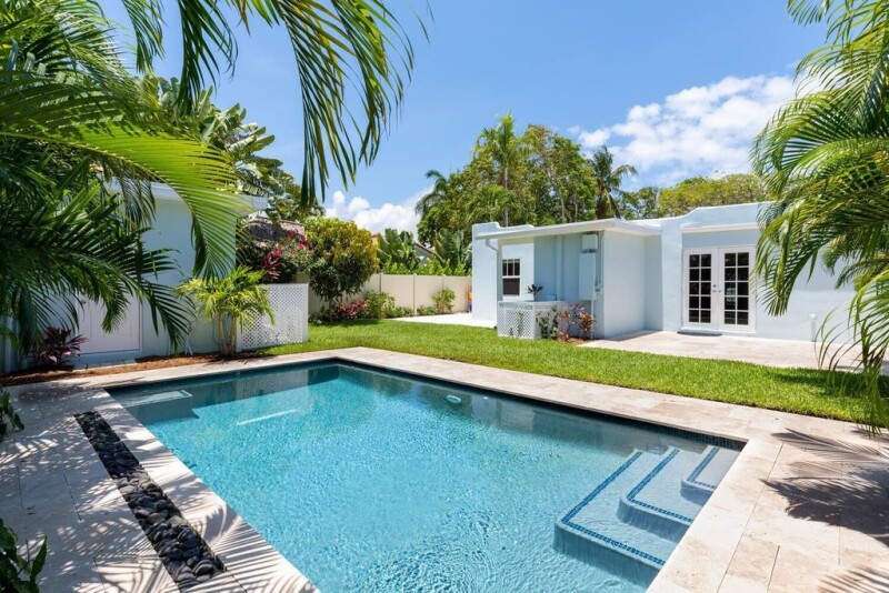 Charming, completely remodeled 1926 Belair Home located on a quiet cul-de-sac East of Olive in the highly sought after SoSo neighborhood. This 3 bedroom, 3 bathroom home features original Dade County Pine hardwood floors, high impact hurricane windows and doors, updated bathrooms and a remodeled kitchen with antique white cabinets, quartz countertops, and stainless appliances. The impact skylight in the living area provides wonderful natural light to the home and the French doors in the Master bedroom lead to a fully fenced, lushly landscaped backyard and heated swimming pool. Available for annual lease for $7,450 monthly.