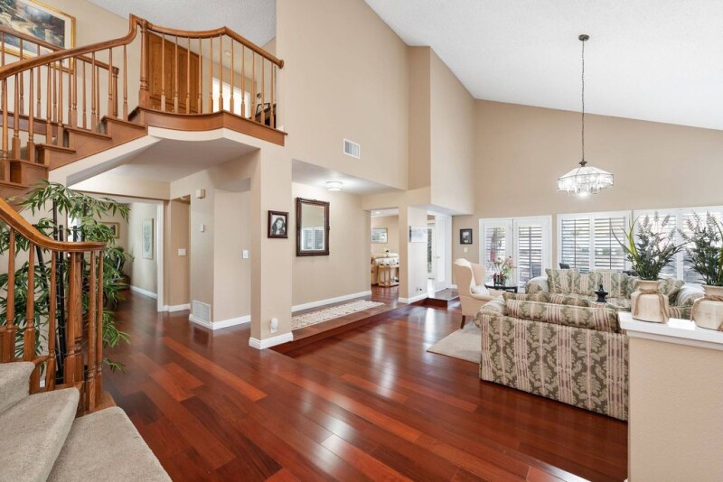Nestled in the prestigious gated Tennis community of Chanteclair, this stunning home offers refined living with beautiful updates that include Brazilian Mahogany floors throughout, plantations shutters, updated kitchen and baths, roof, HVAC and more. A lush entryway leads to soaring ceilings in the formal living room, where abundant natural light pours in through large windows overlooking the backyard. A cozy fireplace adds warmth to the space. The private formal dining room is perfect for entertaining. The spacious kitchen features updated cabinetry, Viking appliances, a sunlit garden window, and a charming breakfast nook, all flowing seamlessly into the oversized family room with a fireplace and wet bar. A graceful curved staircase leads to the second level, where all four bedrooms are located. The luxurious primary suite boasts a spacious sitting area with a fireplace, while the updated en-suite bath offers dual closets, including a meticulously organized walk-in. Three additional guest rooms feature newer closet doors and enjoy the updated hall bath. A well-appointed laundry room completes the upper level. Relax and unwind to the soothing sounds of the waterfall in the beautiful stone faced spa. The tranquil patios and well-appointed BBQ area create the perfect setting for outdoor entertaining in this charming backyard. As a resident of the exclusive Chanteclair community, you'll enjoy access to private tennis courts, playgrounds, and scenic walking paths, enhancing the neighborhood's appeal with resort-style amenities.