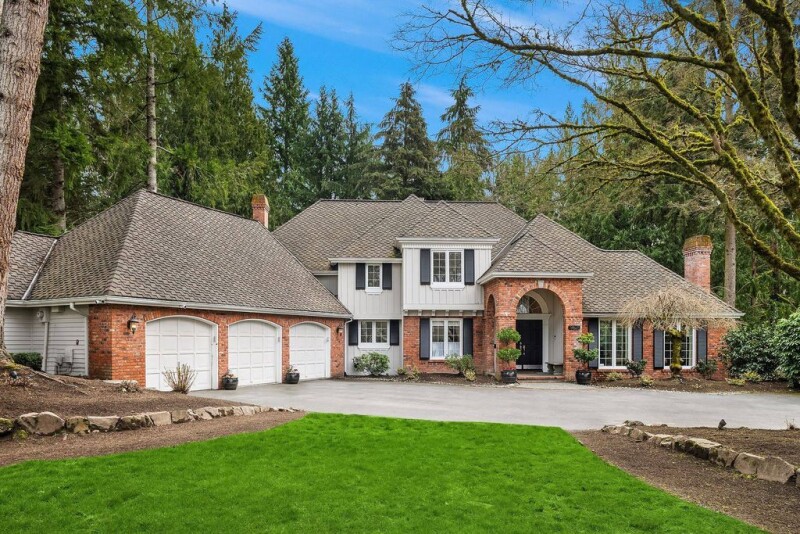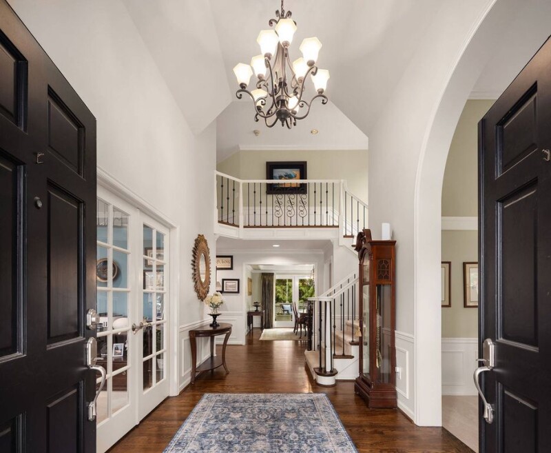 Stately 5-bed, 4-bath Home Exudes East Coast Charm. Formal living boasts 20-foot ceilings with floor-to-ceiling East-West windows for abundant natural light. Dining room opens to spacious deck overlooking Greenbelt. Gourmet kitchen with newer appliances and pantry + coffee bar and beverage fridge flows into great room with fireplace. Kitchen nook opens to entertaining deck. Primary suite offers jetted shower and soaking tub + walk-in closet. Upstairs 3 bedrooms and full bath. One bedroom features a gaming/study room. The lower level includes a guest bedroom with a full bath, spacious movie/game/bonus room with fireplace and a workout area and patio. Private Deck with hot tub off guest room. Ample storage throughout and fully fenced backyard and oversized 3-car garage. AC and wired for generator.