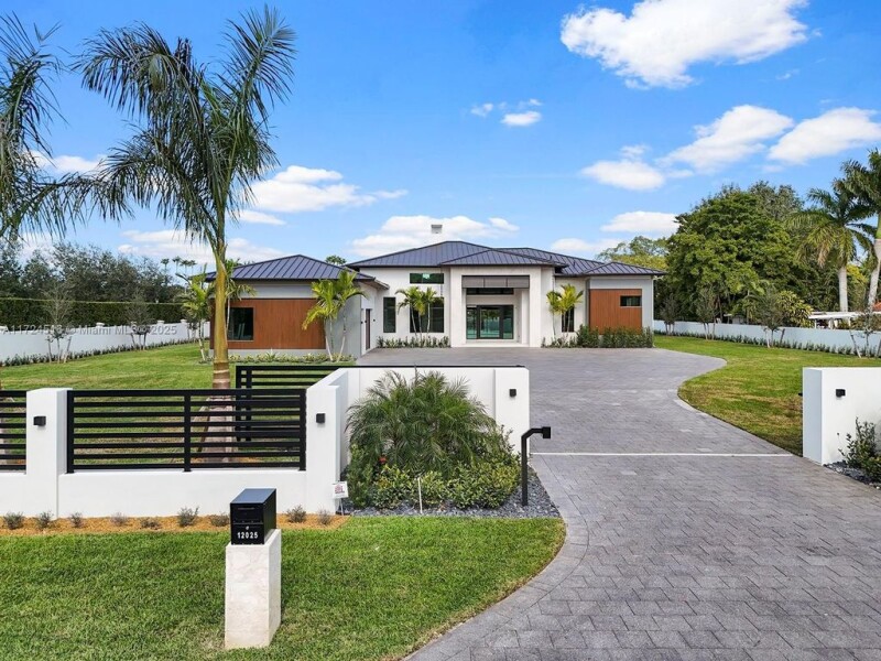 Newly custom-built estate in the coveted Horse Country area, completed in 2025 & situated on over an acre of land with 7,471 total sqft. Designed for ultimate comfort, this home features soaring 17ft ceilings, expansive living spaces, a fireplace, gourmet kitchen, maid’s quarters & a versatile playroom/office. The outdoor area is perfect for entertaining, with a vast terrace, summer kitchen & oversized tanning deck/pool/jacuzzi. Smart tech ready w/surround sound, security cameras & alarm system. Built with premium materials like a metal roof & impact windows, the home also includes a buried 1Kgal propane tank. Additional features include a gated entry, oversized paved driveway, and a spacious 3-car garage. This perfect blend of modern sophistication and serene country living awaits you.