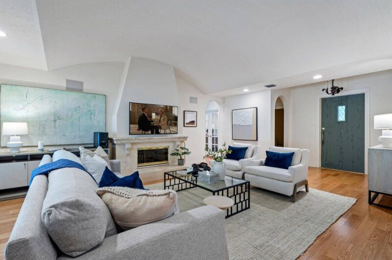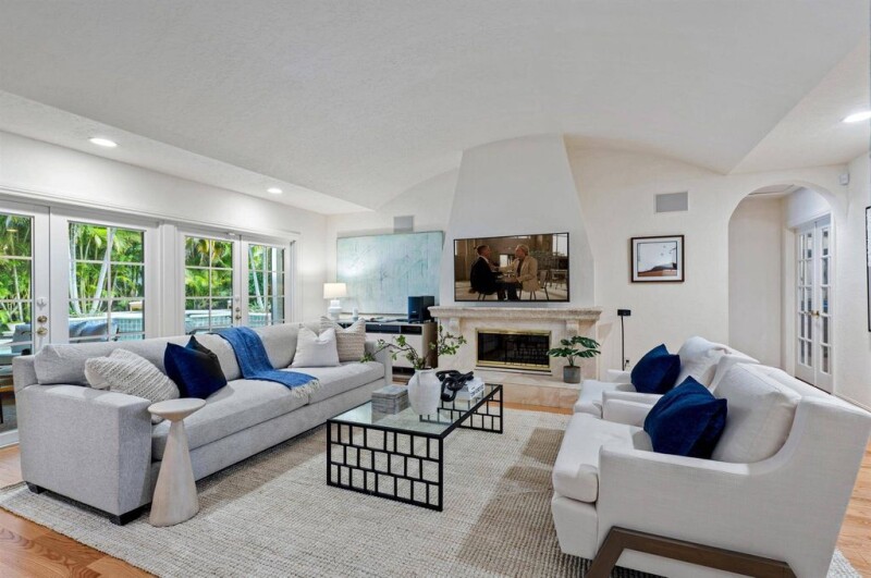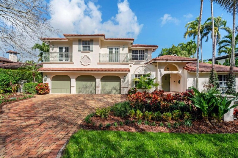 Residing in the historic Old Floresta enclave, this gracious Addison Mizner style of architecture with its barrel tile roof, twin Juliet front balconies, oversized peaky cypress entry door, screened patio with cedar ceiling, custom fireplace and exterior architectural detail. Its glorious entertaining oasis boasts a heated saline pool with spillover spa, a full summer kitchen with floating cooking station and alfresco dining area, and a screened patio for full enjoyment. While the spacious interior encompasses a secluded primary suite with expansive balcony overlooking the pool, salon living room, formal dining room, gourmet chef's island breakfast bar kitchen, loft lounge, home office, guest bedrooms for easy generational living and convenient entertaining, includes three-bay garage.