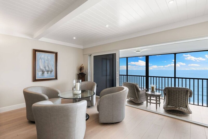 Enjoy direct unobstructed front-row views of the Gulf! Rarely available, this exquisitely updated seventh-floor end unit is a masterpiece of refined coastal luxury and offers what can only be described as one of the best views in all of Naples. The spacious and light-filled floor plan features three bedrooms and three full baths, wide-plank light oak flooring, beautiful intricate ceiling details and designer finishes throughout. The expansive great room overlooking the water features a gorgeous custom fireplace wall and leads to the expansive screened balcony with sweeping Gulf and sunset views. The large eat-in kitchen seamlessly blends style and function, complemented by an elegant dining area with a built-in bar and wine cooler. A second balcony captures serene bay views and allows for refreshing front-to-back breezes. The large primary suite has gulf-side views and balcony access, while two private guest suites each offer their en-suite bath. Gulf View Beach Club has one of the desirable beachfront locations south of Doctor's Pass, and is an intimate building with just 32 residences, offering direct beach access, a beachfront pool and patio, social room, fitness center, on-site manager, individual storage rooms, paddleboard and kayak racks. Just minutes from luxury shopping and fine dining of downtown Naples, this is beachfront living at its finest.