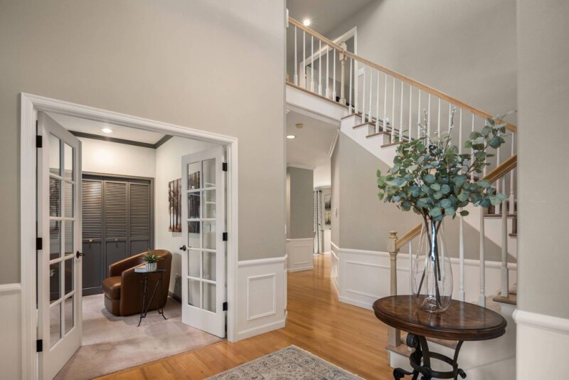 An absolutely beautiful home surrounded by an equally beautiful landscape. This meticulous home has been extensively upgraded year after year from the Gourmet Kitchen with 5-burner Wolf Range + Broan downdraft vent + GE Profile 30" Double oven + Island seating. Elegant Living + Dining Rooms. Main Floor Den with custom built-in shelving + wainscoting. Primary Suite with Heated floors + Newer Cabinetry + Dual Sinks + Walk-in Closet + Separate WC + Soaking Tub + Shower. Three additional bedrooms (4th is bed/bonus). Newly Remodeled upper bath. Level yard surrounded by colorful gardens + lush plantings + backs to Greenbelt. Newer Hardie Plank siding 2020. Newer 50-year roof. 3 Car-garage. Stunning home.