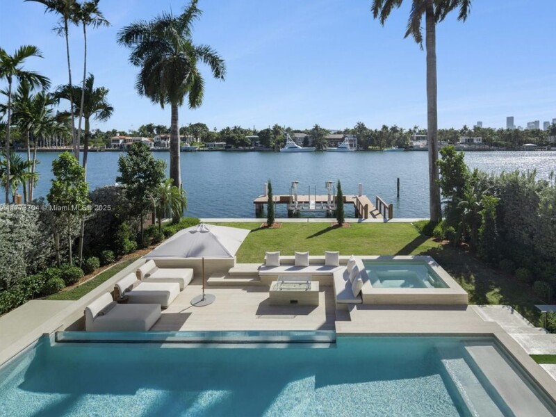 Step Inside With Me! This new modern home on gated Hibiscus Island stuns with design, finishes, and downtown views. A 23’ steel door reveals a waterfront salon illuminated through telescopic glass featuring a fireplace and sleek lighting. Outfitted in marble and fluted oak, the culinary experience is complete with hosting island, wine wall & bright dining setting. A floating staircase leads to an office + 4 suites with oak flooring. The primary showcases 2 sitting lounges, grand dressing room, midnight bar, and marble-clad bath that opens to an expansive terrace with skyline vistas. The Southern-facing outdoors are defined by a pool, spa, covered lounge, Summer kitchen, sunken fire pit, sun deck and dock along 60 feet of water. Wellness features: reverse osmosis, UV sauna, and cold plunge.