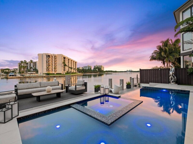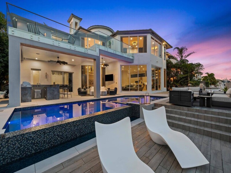 Welcome to an exquisite fully furnished waterfront estate located in the coveted Harbour East community. This stunning 6 BR, 6.1 BA masterpiece offers unparalleled luxury and breathtaking views of the widest part of the Intracoastal Waterway, with Lake Wyman serving as your picturesque backdrop from all major living areas. As you enter through the grand foyer, you are greeted by a soaring 26-foot ceiling in the great room, with a custom 11-foot wine wall and quartz fireplace. The European chef's kitchen, features state-of-the-art Italian countertops, a dramatic waterfall island, and top-of-the-line Sub-Zero and Wolf appliances.The grand primary suite is a sanctuary of its own, offering dual closets, a cozy sitting area with a wet bar and wine cooler and uninterrupted views of the.