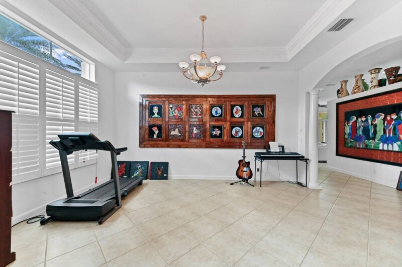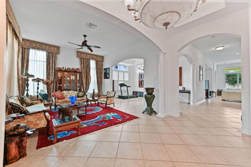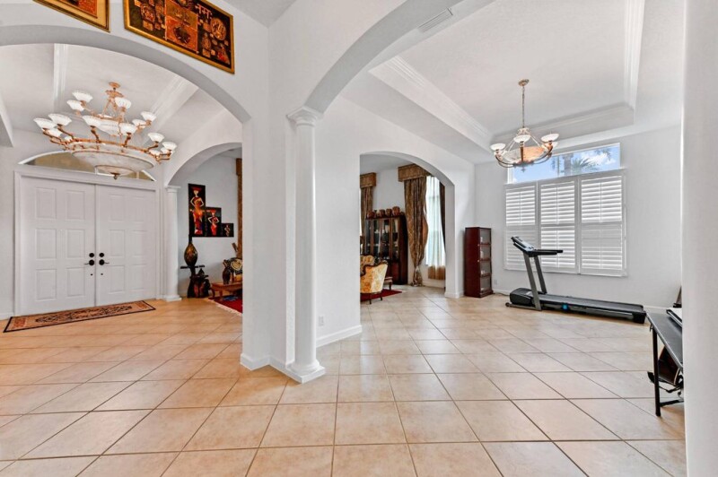 Discover the perfect blend of space, comfort, and style in this stunning 4-bedroom, 3-bathroom pool home nestled on an oversized lot in the gated community Hibbs Grove. Designed to accommodate a large family or anyone in need of extra room, this home welcomes you with a bright foyer entrance and an open layout featuring ceramic floors throughout the main living areas and laminate flooring in the bedrooms. The kitchen is a chef's dream with granite countertops, stainless steel appliances, a cooking island, and a convenient snack bar, all flowing seamlessly into the dining area. Volume ceilings enhance the sense of openness, while the main bedroom offers a private retreat with two walk-in closets and an ensuite bath complete with a soaking tub.