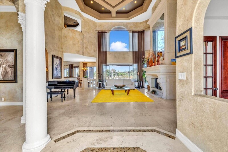 Discover unparalleled luxury in this custom-designed estate located in The Falls, a private enclave within the guard-gated community of Heron Bay. This exquisite home offers 5 bedrooms, 5.5 baths, plus a loft area. 24-ft soaring ceilings with floor-to-ceiling cast stone fireplace and columns. Elegant marble floors and dark cherry wood cabinets. Chef’s kitchen with Sub-Zero appliances, granite countertops, and a full wet bar. Stunning library with wood floors and built-ins (can be used as a 5th bedroom). Fabulous game room – easily convertible to a 6th bedroom. Expansive master suite with double vanity, Jacuzzi tub, and luxurious finishes. Large lanai w/ electric screens. Expansive patio with a heated party pool and spa .Fully equipped summer kitchen. Accordion shutters and a 3-car garage.