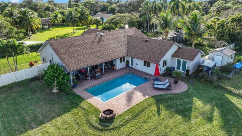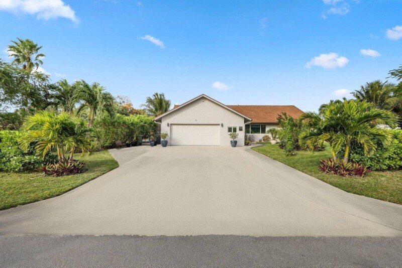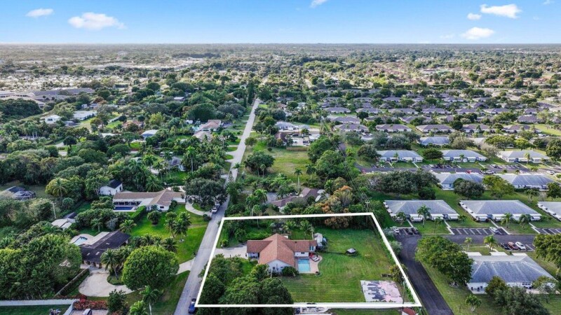 TRULY A RARE FIND!! ALMOST AN ACRE OF LAND IN THE HIGHLY SOUGHT AFTER COMMUNITY OF KINGSLAND, A SPECIAL NEIGHBORHOOD OF JUST 51 CUSTOM BUILT HOMES, AND JUST MINUTES TO DOWNTOWN DELRAY!Offering 3 Bedrooms, 2 Baths and over 3000 total square feet with lots of room for expansion!As you enter, you are greeted with volume ceilings and, an open inviting floor plan. A newly remodeled Kitchen features quartz countertops, custom cabinetry, and stainless LG appliances. The spacious Primary Suite features a walk in closet. A split Bedroom plan offers two more Guest Suites. A large mud room offers lots of additional storage. One of the highlights is the large covered patio, which overlooks the breathtaking open views of land adorned with lush tropical landscaping. (continued).