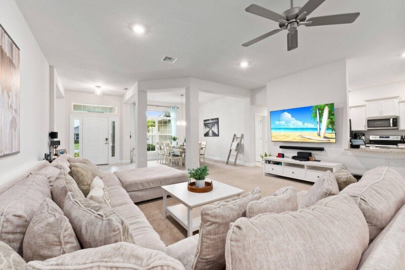 This stunning 2022-built CBS home features (4) beds, (3) baths, a (3) car garage, & over 2,500 SQFT of stylish living space, making it one of the largest floor plans in The Waterstone Community. Situated on a premium lot backing up to the preserve. Smart home upgrades include Alexa-controlled lighting, motorized window coverings, WiFi-enabled locks, & a Ring security system. Inside, enjoy vaulted 10-foot ceilings, spacious bedrooms, & multiple walk-in closets, while the kitchen boasts ample cabinet & countertop space for entertaining. The Waterstone community features a clubhouse, pool, fitness center, playground, pickleball, & sidewalks--all with a $5 a month HOA. Located just minutes from the beach, shopping, dining, & with easy access to I-95/ Turnpike.