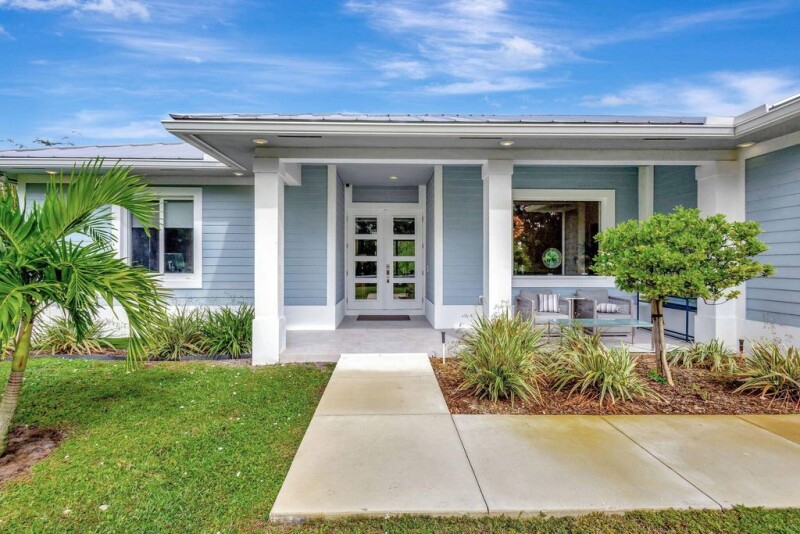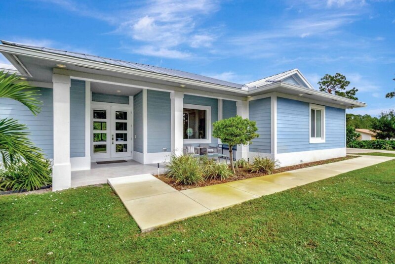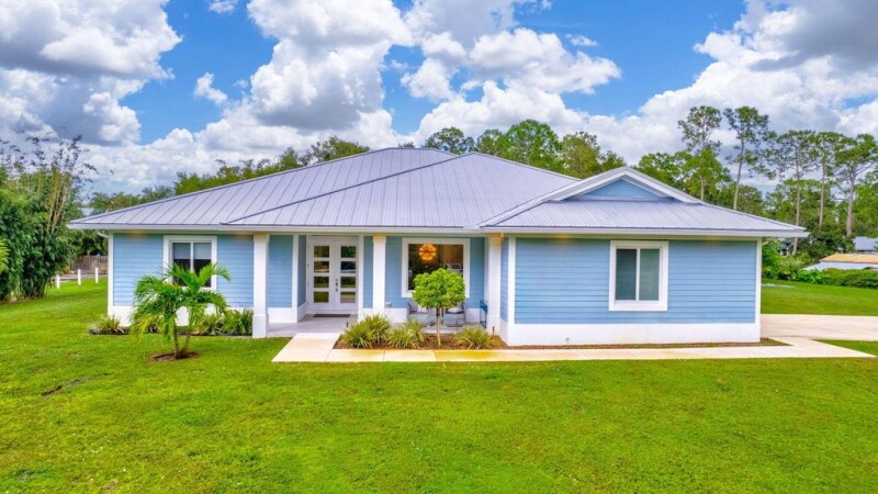 SELLER MOTIVATED - PACKED & READY TO MOVE - RELOCATION OUT OF STATEDesigner decorated contemporary 4/3/2 CBS , Standing Seam Metal Roof, Built 2022. All Impact. Single story 2751 lvg sq ft. SS kitchen appls,including 30'' electric range with air fryer. Two closets primary dressing & spa like bath split plan from three private guest rooms. All hard floors. Covered patio great shaded gathering and grilling area. Fully contained garden area, multiple fruit trees, fire pit seating area, fill already added for addl outbldg garage/workshop space. Irrigation syst. Water Softener sys. Fully fenced, gated, concrete driveway & concrete culverts. Home exp. front facing South. Shaded large covered patio facing North w/ open yard space behind sunrise to sunset exposure for future pool/sp.
