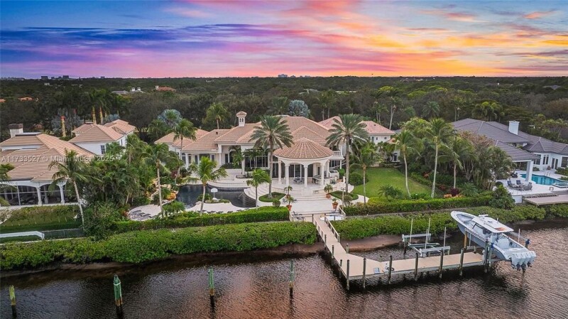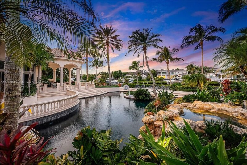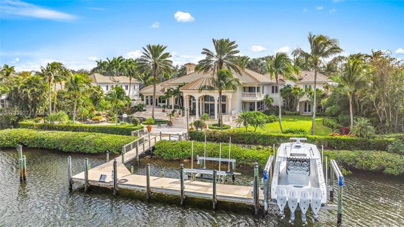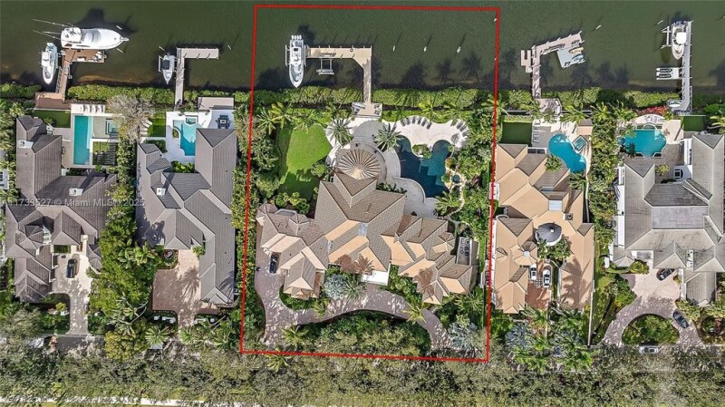 Discover a unique DOUBLE LOT opportunity in the prestigious Admirals Cove Country Club with this expansive .95-acre property, featuring a residence of approximately 9,316 sq. ft. of living space and 12,022 total sq. ft. This stunning estate boasts very high ceilings, an oversized yard with a sparkling pool, and water views. The home also includes a dedicated office, a media room, and numerous spaces designed for luxurious living and entertaining. The property offers approximately 200 linear feet of waterfrontage, with potential to accommodate a yacht over 100 feet (subject to navigability and all applicable requirements). The lot's size and configuration may provide the possibility of dividing it into two parcels of approximately .47 acres each, or for building a new home.
