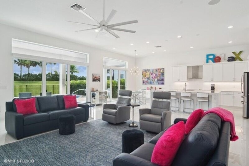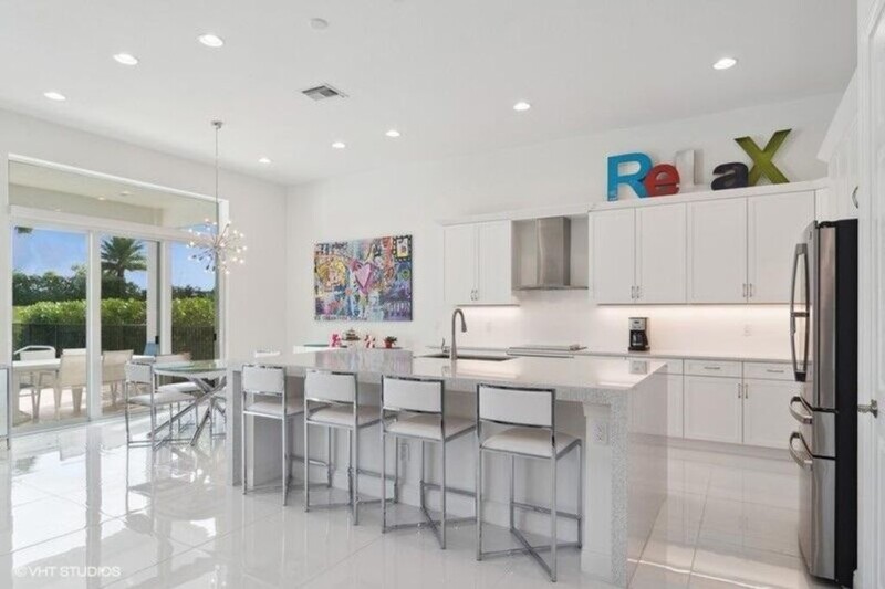 DESIRABLE TROPEA model features a spacious and modern great room floor plan with three bedrooms, 2 are equipped with their own en-suite bathroom, providing maximum comfort and privacy. The house is designed with a contemporary touch, boasting numerous upgrades that enhance both functionality and aesthetics. The kitchen has it all including a huge center island covered in beautiful quartz with plenty of room for extra seating. Upgraded white shaker cabinets offer tons of storage space. Large living room with adjacent formal dining area and breakfast nook leads out to covered lanai that offers a shaded area so you can appreciate the outdoor space regardless of the weather. For the sun lovers a refreshing open-air pool surrounded by travertine patio adds a luxurious and recreational element.