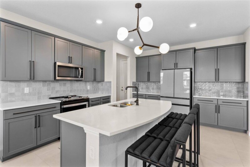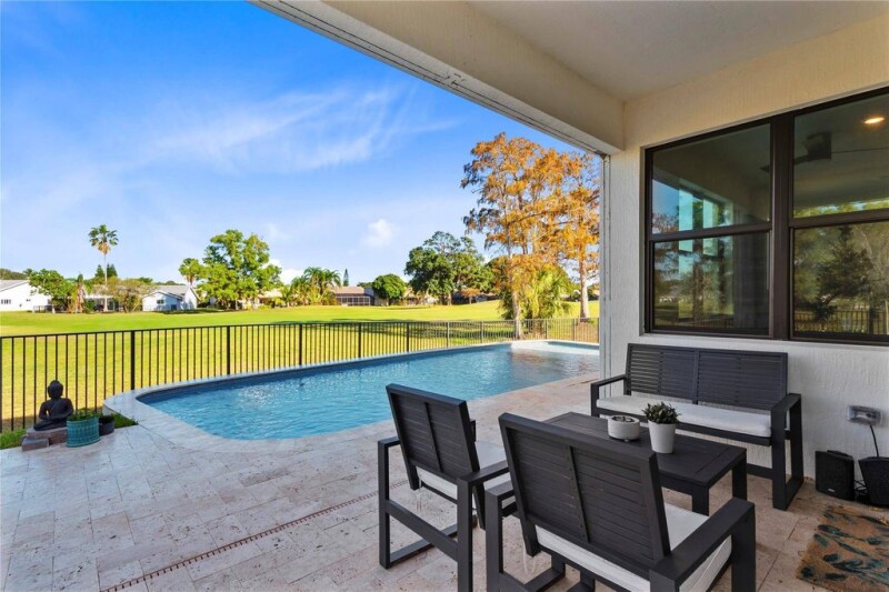Newer construction single family pool home located on a cul de sac w/amazing salt water pool and golf views. This home features 5 bedrooms, 3.5 bathrooms and a loft. The first floor features one bedroom/office space, tile flooring, open kitchen/living room, modern kitchen cabinets w/quartz counters, stainless steel appliances and a walk in pantry. Upstairs you will find vinyl flooring, washer/dryer w/a laundry sink, loft, 4 bedrooms, including the primary room w/a spacious walk in closet. Primary bathroom has dual sinks & a step in shower w/bench. Impact windows/doors. Fully fenced in backyard with lanai and an expansive side yard w/an outdoor kitchen. Amenities: clubhouse, resort style pool, pickleball & tennis courts, golf pro-shop, restaurant, bar, gym & access to a 27 hole golf course.