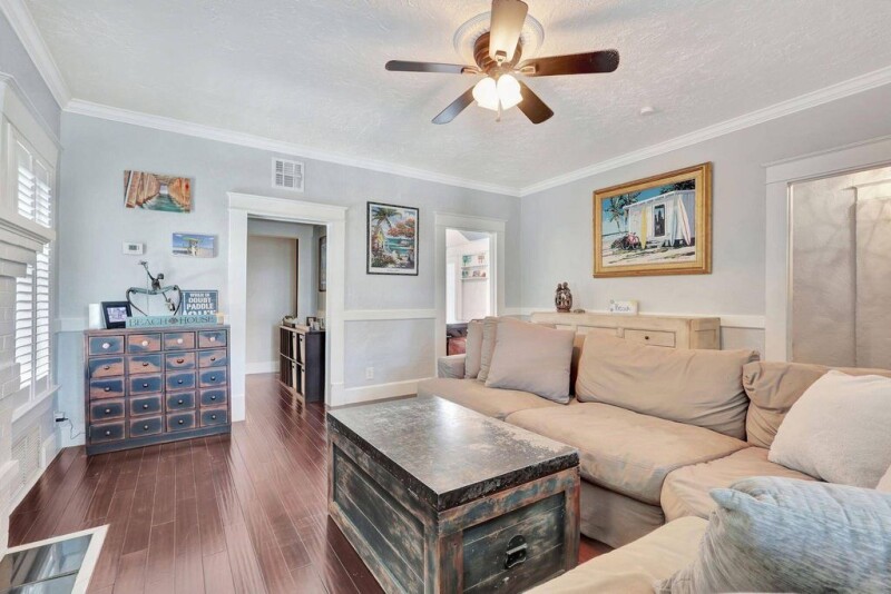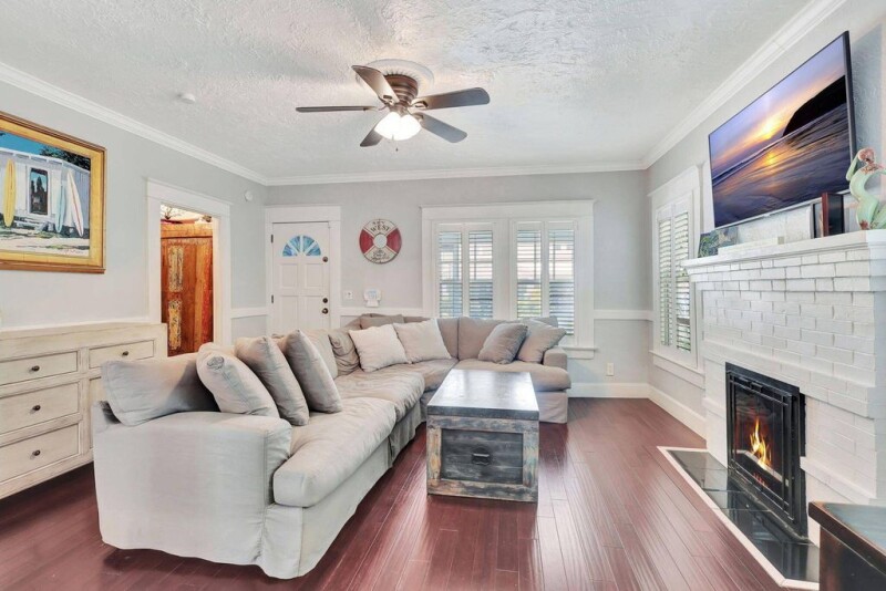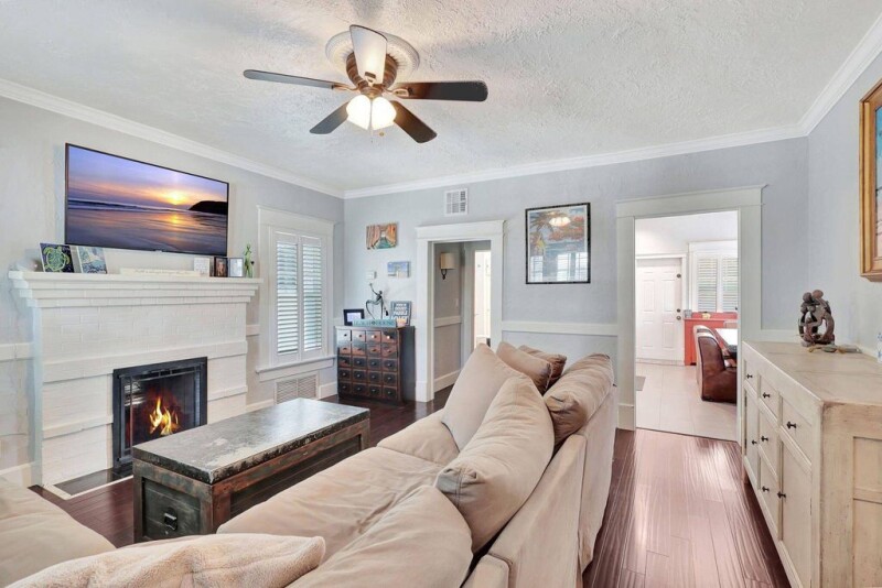 A little slice of Key West located right in the desirable area of Mango Promenade in West Palm Beach! This 4 bedroom, 2 bath home has everything you could want including impact windows, plantation shutters, wood flooring, fireplace, built in closets, white kitchen, quaint front screened porch, custom landscaping and even a comfortable sized backyard with artificial turf for easy maintenance and an outdoor shower! Two AC units and both replaced in the last 3 years. Completely redone second floor patio as well! Truly your own little beach bungalow that is walking distance to downtown, Palm Beach Island and only one block to the intracoastal! No HOA either! Come be a part of one of the most sought after areas in West Palm Beach! Great for investment as an airBnB or for a homeowner!.