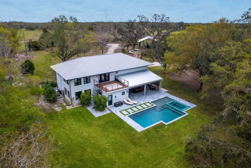 Minutes from the Fruitville Road corridor, take a short scenic drive down canopy roads and arrive at a once-in-a-lifetime farmhouse estate. This country home is among century-old oaks and sits on 18 breathtaking acres. The newly renovated three-bedroom, three-bath, three-car garage home, provides open-concept living with vaulted ceilings, hardwood floors throughout, a wood-burning fireplace featuring a whitewashed stone wall. The crisp and beautifully designed kitchen has a simple aesthetic and boasts newer Café appliances, a center island and composite stone counters and backsplash. Connected to the beautiful kitchen is a spacious walk-in pantry and around the corner, herringbone-laid brick floors enhance the laundry room and side entry door foyer. Cable rail lines the staircase to the second-floor loft, utilized as a home office, but flexible options could be a den, home gym or enclosed for a fourth bedroom. The primary suite is a retreat all on its own, spacious and inviting with two walls of windows overlooking wooded privacy, a generous walk-in dressing room and closet with custom built-ins and glass door cabinetry. The primary bath is a luxurious, inviting space with soaking tub, dual sinks, glass enclosed linen closet and separate shower with marbled porcelain tile. Outside, the best of a country lifestyle continues. In 2023, an inviting new pool and spa was built, surrounded by marble decking and sited next to the lanai with retractable screening. A covered, partially enclosed grill and smokehouse room, makes barbecuing easy come rain or shine. This home is a horse lovers dream. Ramm Flex Fencing around six acres and three pastures was installed 2021, and with a 30-year warranty, it's practically maintenance free. Two pole barns, one just built in 2022, provide covered storage for equipment and gear, plus two oversized stalls could easily be converted into four stalls and the nearby RV hookup has water and electricity. At the end of a long day, whether you've been working the land or working in the office, you will love kicking back here. It's hard not to fall in love with all this amazing home and land has to offer!.
