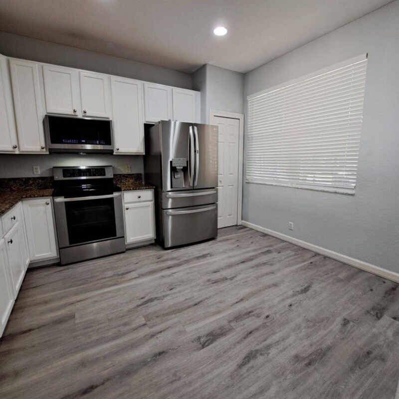Exceptionally Maintained Townhome with Modern Upgrades!This beautiful townhome is a rare find, featuring 2025 brand-new impact windows and doors, ensuring safety and energy efficiency. Enjoy a modern kitchen with breakfast nook and a large laundry room with plenty of storage. The home boasts a 2021 AC system along with gutters, waterproof Vinyl floors throughout, along with numerous other high-end upgrades. Move-in ready and designed for effortless living, this home perfectly blends style, technology, and functionality.NEW 2025- Impact windows and doors completewasher and dryer2024 New Microwave, backyard artificial grass/landscape, auto LR Curtain, french drain syste2023 New dishwasher, water heater, exterior paint, master frameless shower, smart sprinkler hub.