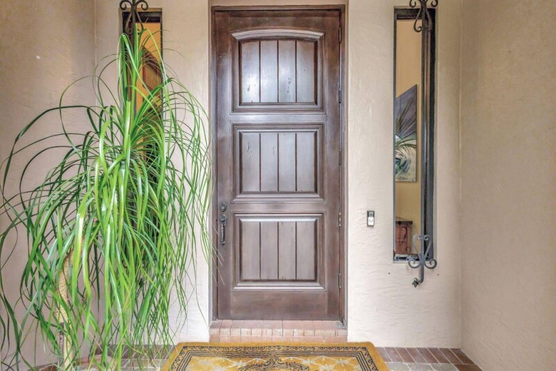 Experience luxury living in the highly sought-after Talavera neighborhood, close by The Club amenities at Mirasol. This exceptional lakefront estate offers breathtaking views of the 17th fairway on the Fazio-designed Sunrise course, combining elegance, comfort, and meticulous craftsmanship. From the moment you arrive, the architectural beauty of this three-bedroom, 4,500 sq. ft. home is undeniable. Stunning floor-to-ceiling French doors and expansive windows flood the home with natural light, enhancing its timeless appeal. Enter through a grand solid mahogany front door into an exquisite interior featuring with 18 x 18 Saturnia marble flooring throughout the main living areas.