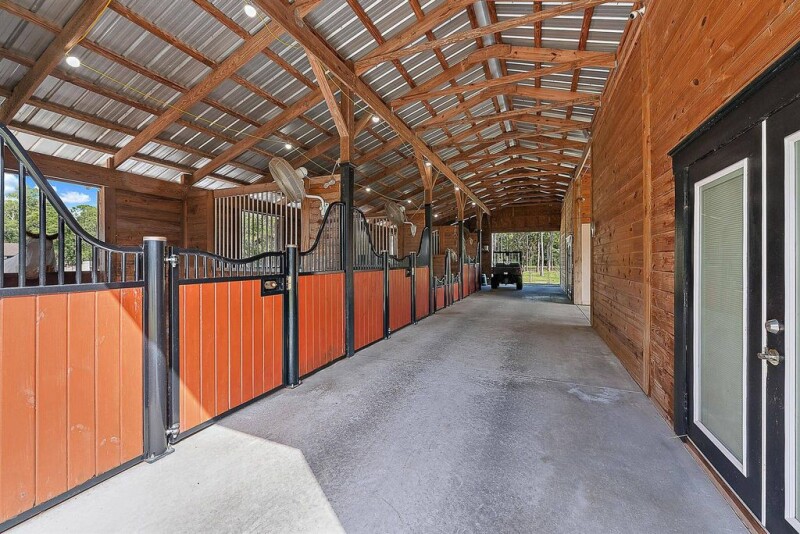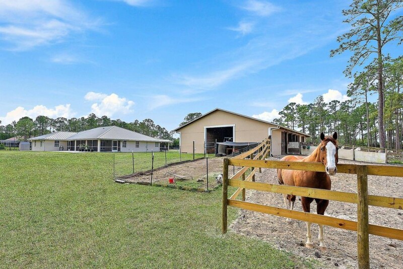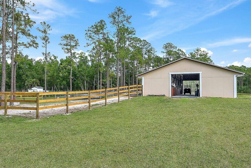 This true equestrian property in the sought-after Caloosa community offers everything you need for a functional and enjoyable equestrian lifestyle. Spanning 5.21 acres, it features a 2018-built center-aisle barn with 5 stalls with turnout access, climate-controlled feed and tack rooms, and a round pen. There are multiple paddocks and plenty of space to add an arena or additional pastures, making it ideal for those serious about their horses. The CBS home with a 2022 metal roof provides a comfortable living space with a split floor plan, defined yet open kitchen, dining, and living areas, an oversized 702 sqft. garage, and both front and back screened porches.The property boasts an oversized circular driveway with two gated entrances, plus a separate gated entrance for horse trailers,.