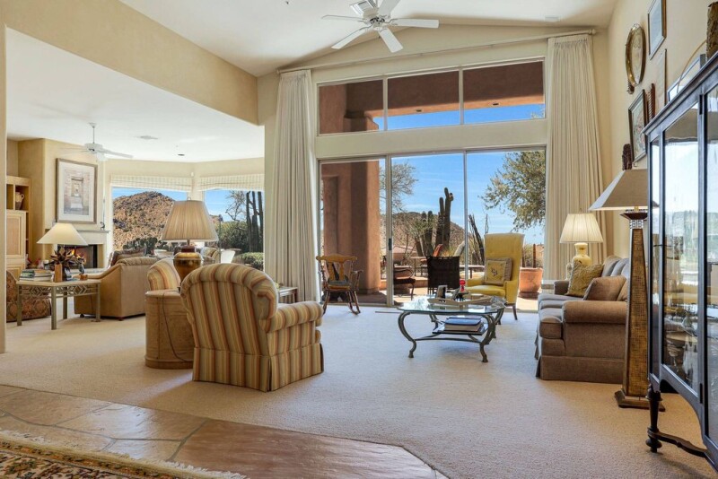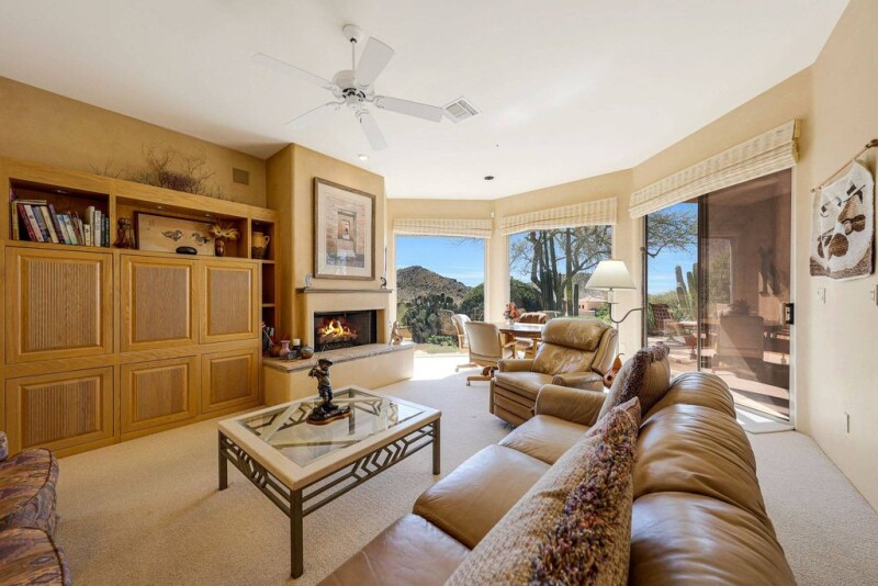 Discover an exquisite single-level residence nestled within the prestigious gated community of Quail Ridge at Troon Village in Scottsdale, AZ. This remarkable 4-bedroom, 3-bathroom home spans 3,528 square feet and features the rare convenience of no interior steps, making it an exceptional find in this highly sought-after neighborhood. Positioned on an elevated corner lot, this home offers unrivaled privacy and showcases breathtaking panoramic views of McDowell Mountain and the sparkling city lights below. Expansive windows throughout flood the interior with natural light, creating a bright and airy atmosphere in every room. The thoughtfully designed floor plan includes two bedrooms sharing a Jack-and-Jill bathroom, an ensuite guest bedroom, and a luxurious primary suite complete with a separate shower and tub, as well as a spacious walk-in closet. The backyard serves as a serene retreat with a drained spa (equipment remains), and a cozy patio just off the kitchenideal for your morning coffee. A built-in BBQ makes entertaining easy and enjoyable. Bring your decorator or designer and make this property your own, transforming it into the ultimate Scottsdale retreat. Residents of Quail Ridge at Troon Village also enjoy access to a community heated pool and spa, providing the perfect place to relax and unwind. Don't miss this rare opportunity to create your dream home in one of Scottsdale's most desirable communitiesschedule your private tour today!.