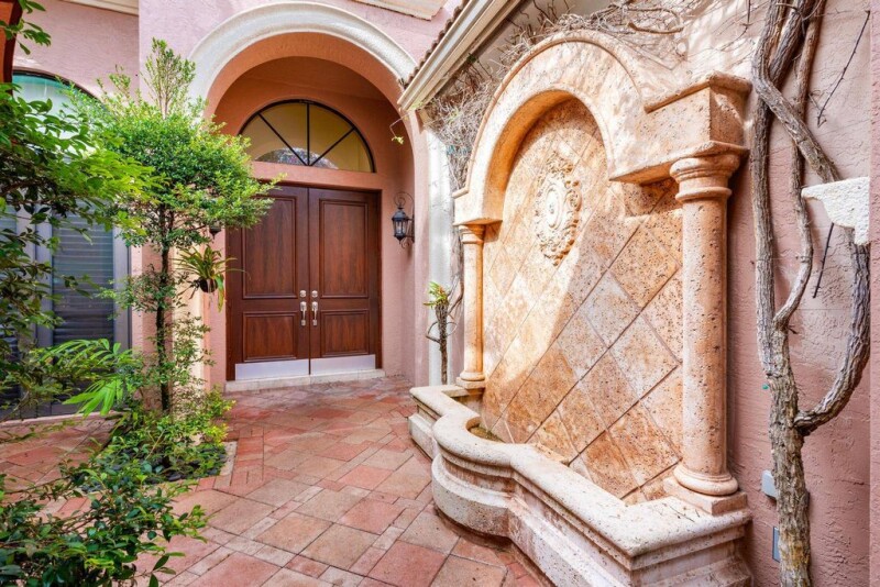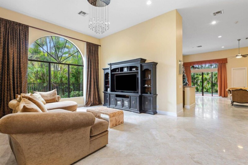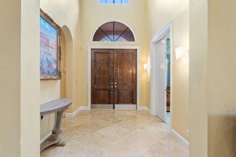 Motivated Seller!!!! This charming Martinique is on a prime private lake lot and features 3 en-suite bedrooms plus a library/4th bedroom, 3 full and 1 half baths - all on one single level, w/ a triple-split floor plan including a private guest house. Highlights include marble floors thru-out the main living areas, wood floors in the office, a gourmet chef's kitchen with wood cabinetry, granite countertops, & is open to a spacious family room. Designer appointments include architectural millwork, light fixtures, and artistic details. The primary features dual walk-in closets, and a luxurious primary bath w/ separate vanities including a makeup vanity. With a heated pool surrounded by tropical landscaping, enjoy unmatched privacy and style in this lakefront gem!.