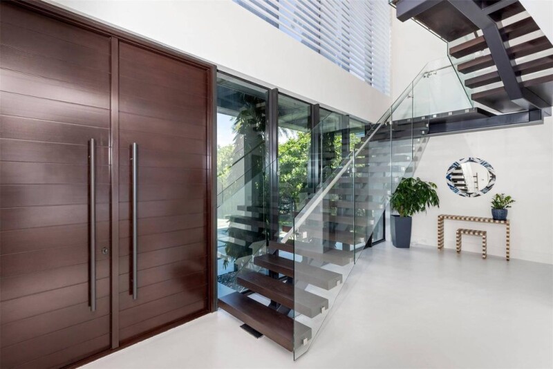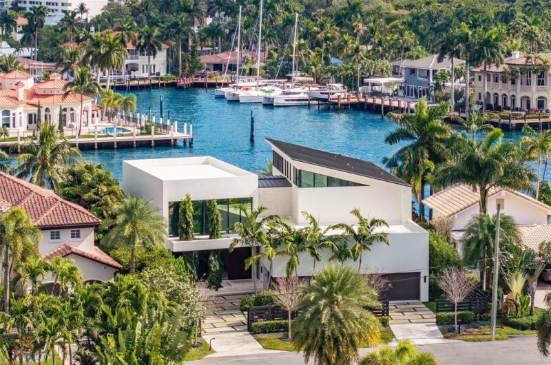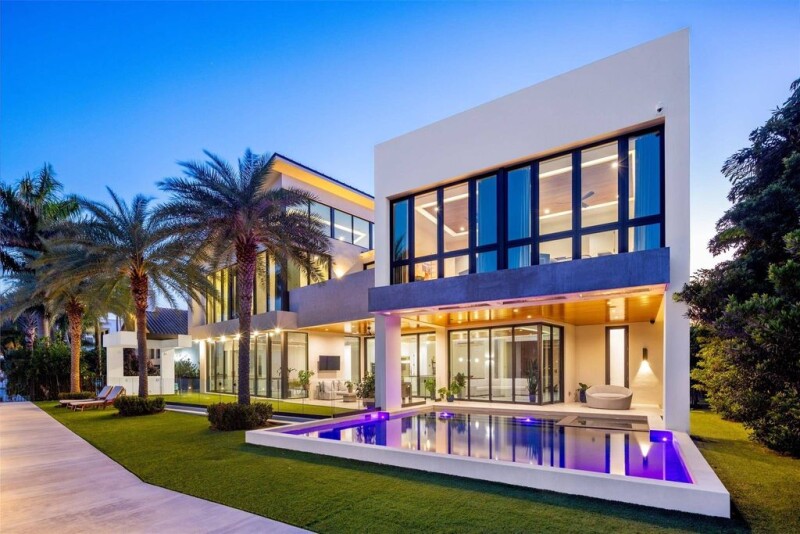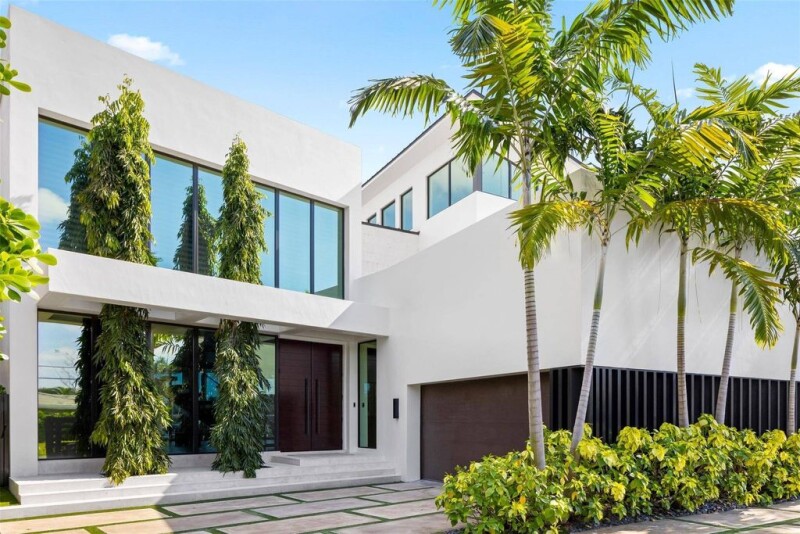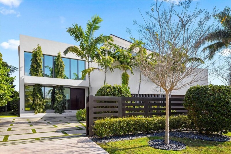 Nestled along 105' of direct Intracoastal & located in the "A" rated Bayview Elementary district, this gated estate by Affiniti Architects features exquisite finishes & smart home technology. Built w 118 deep pilings at 8 FT elevation, the home boasts an open-concept layout that seamlessly connects indoor & outdoor spaces, perfect for entertaining. Inside, enjoy custom micro-cement & wood floors, a gourmet kitchen w top-of-the-line appliances, dual islands, custom cabinetry, wet bar & elevator. The expansive primary suite includes high ceilings, dual walk-in closets, & a spa-like bath w a steam shower & soaking tub. The 4-car garage w 20' ceilings is ready for lifts. The property features a saltwater pool, spa, and newer concrete dock, ideal for year-round boating and waterfront leisure.