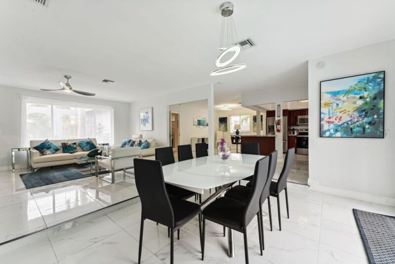 Nestled in the heart of East Hollywood, this magnificent 4bd, 2.5ba home exudes timeless elegance and is currently functioning as a fully licensed AirBnb. Step inside to discover an open-concept layout adorned with high-end finishes. This home fills with plenty of sunlight through the oversized windows. The gourmet kitchen boasts sleek granite countertops, custom wood cabinets, and top-of-the-line appliances.The master suite is a sanctuary of luxury featuring a spa-like oversized shower. The 3 additional bedrooms offer ample space for family, guests, or home office. The backyard features a tropical oasis complete with a charming pergola, and a heated pool. This haven is equally suited for family gatherings or as an exclusive Airbnb retreat centrally located to the beach and downtown.