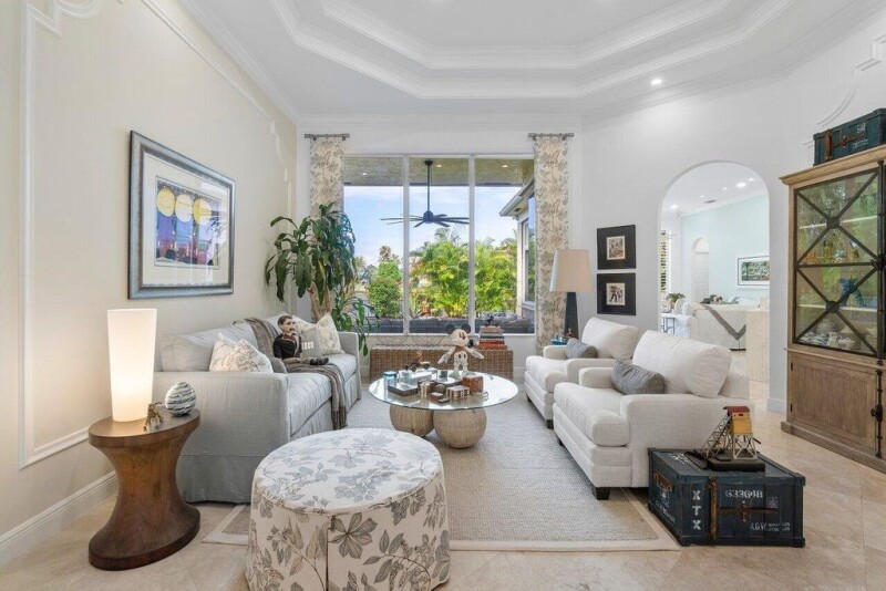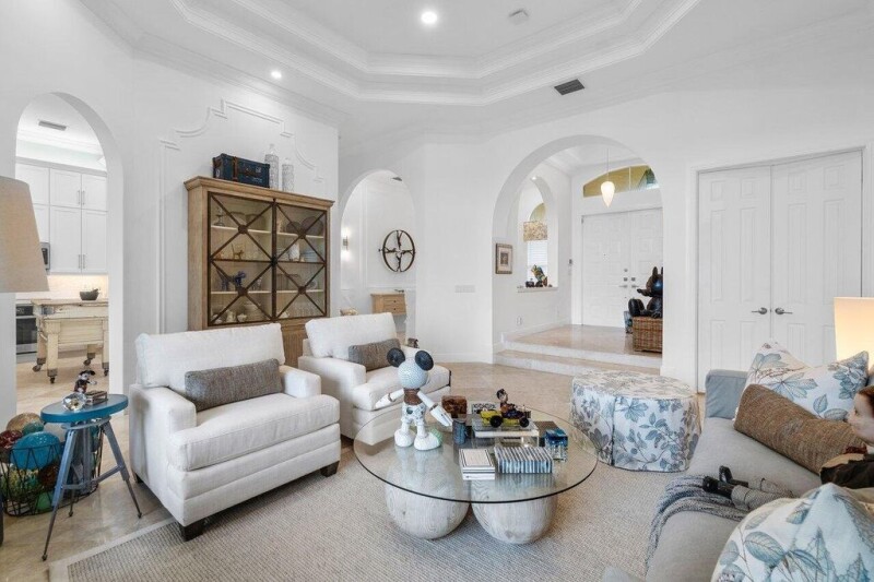 Stunning LAKE VIEW residence, meticulously remodeled, offering 4 Bedrooms, Den/Office, 3 Bathrooms, and a 3 Car Garage within an exclusive gated community. The grand double-door entry foyer sets the tone for elegance, leading into a captivating living and dining area. Enjoy the bright and open split floor plan, accentuated by soaring volume ceilings. The gourmet kitchen is a culinary delight, featuring abundant wood cabinetry, quartz countertops, a waterfall island, and GE Profile stainless-steel appliances including an induction cooktop. Additional highlights include a Spice cabinet and walk-in Pantry. A spacious family room flows seamlessly to a covered patio and fenced backyard, perfect for outdoor relaxation. Retreat to the luxurious Master Suite boasting a sitting area, dual spacious.