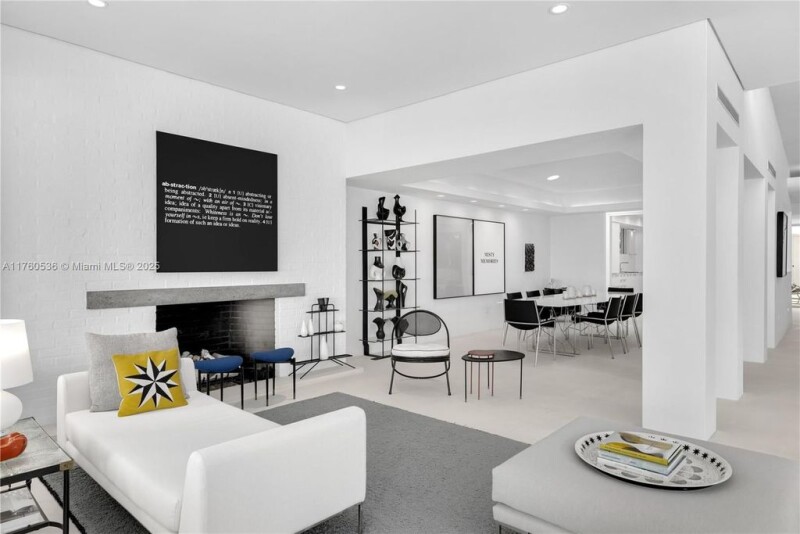 Step into this breathtaking waterfront sanctuary on prestigious North Bay Road. This 4-bedroom, 4.5-bath mid-century estate sits on an oversized 27,013 SF lot w/ 113’ of pristine bay frontage. A grand koi pond entrance leads to sunlit interiors, featuring L-shaped living room, bar, private office, media room, & formal dining area. The fully renovated Bulthaup kitchen combines style & function w/ high-end appliances & a second prep kitchen. The primary suite mesmerizes w/ sweeping water views, dual walk-in closets & a luxurious spa bath. Outdoors complete w/ lush landscaping designed by Raymond Jungles, heated pool, dining & seating pavilions, private dock & a Kalamazoo built-in summer kitchen w/ pizza oven. This home blends privacy & serenity, moments from Miami Beach’s vibrant lifestyle.