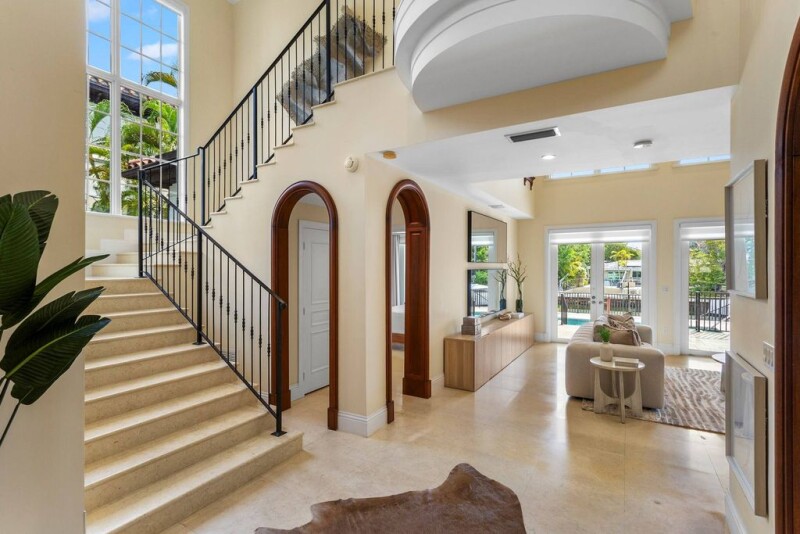 Modernized Mediterranean Waterfront Estate in Gables by the Sea with NO BRIDGES TO BAY! Experience waterfront living with a private dock for up to a 60-ft boat and direct water access, plus a jet ski lift for endless family memories on the water! Inside, this 2006-built home boasts 4,096 living SF, 5 ensuite bedrooms, 5.5 baths, and expansive living spaces featuring soaring ceilings and exquisite details like rich Mahogany archways. The spacious primary suite offers peaceful water views, two walk-in closets, a luxurious bath, and a large private balcony to enjoy Miami’s year-round sunshine. Backyard features a large covered terrace overlooking the recently renovated pool deck, canal views and garden. Close to all the Top Schools. Gated Community. Coral Gables Living at its finest!.