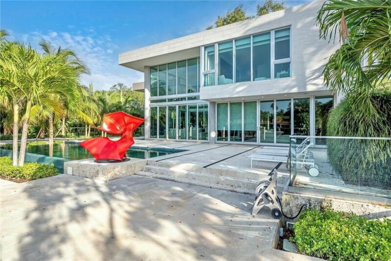Modern custom masterpiece, on large, spectacular New River waterfront estate. On beautiful, prestigious, tree-lined Rio Vista Blvd., 120' of deep water dockage on enchanting New River, designed to maximize changing river views & seamlessly blend with tropical gardens & stately live-oaks. Grand entry door opens to foyer of glass & spacious home office & lounge, brings tropical gardens inside. Gourmet kitchen opens to spacious family & living rooms overlooking pool & water. All weather entertaining in large covered outdoor lounge & kitchen & expansive private lawn & garden. Steps from elevator, master suite has panoramic views & spa-like bath. Garage has height for lifts & space to add more bays. Yacht Club short golf cart ride & an evening on Las Olas less than 5 minutes.