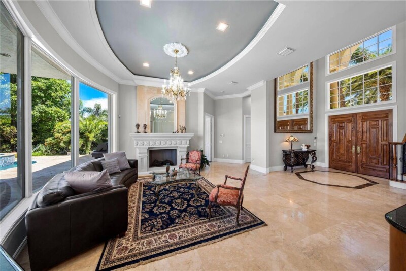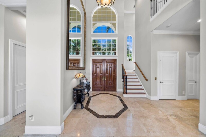 Prime location! Stunning, waterfront estate in prestigious Venetian Isles. Situated on the most sought-after street, this home boasts 100’ of deep-water frontage & an 80’ Trex dock w/ water & electric. The bright, naturally lit interior features a grand entryway & formal living room boasting high ceilings & statement fireplace. There is one bedroom w/ ensuite bath downstairs (currently used as an office); take the elevator upstairs, where you will find the primary suite, open loft & 3 more bedrooms w/ ensuite baths. Just about 15 minutes to the Hillsboro Inlet with no fixed bridges, this home features impact windows & a new metal roof. Enjoy the lushly landscaped backyard oasis with a heated pool & spa, perfect for entertaining. Ideally located near the LHP Yacht Club, dining & more.