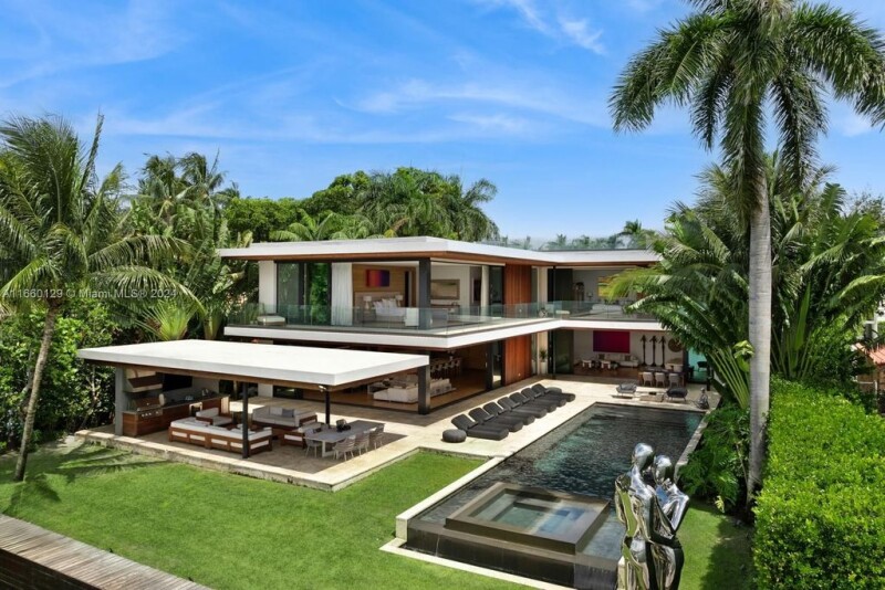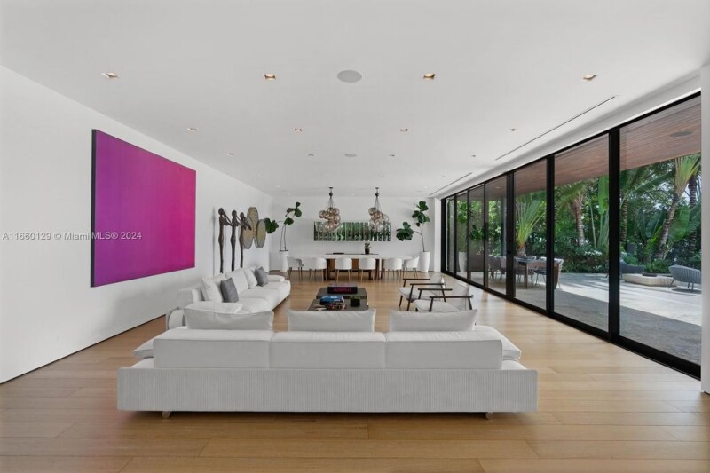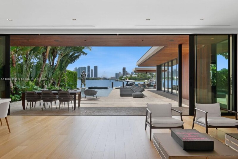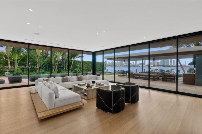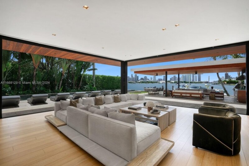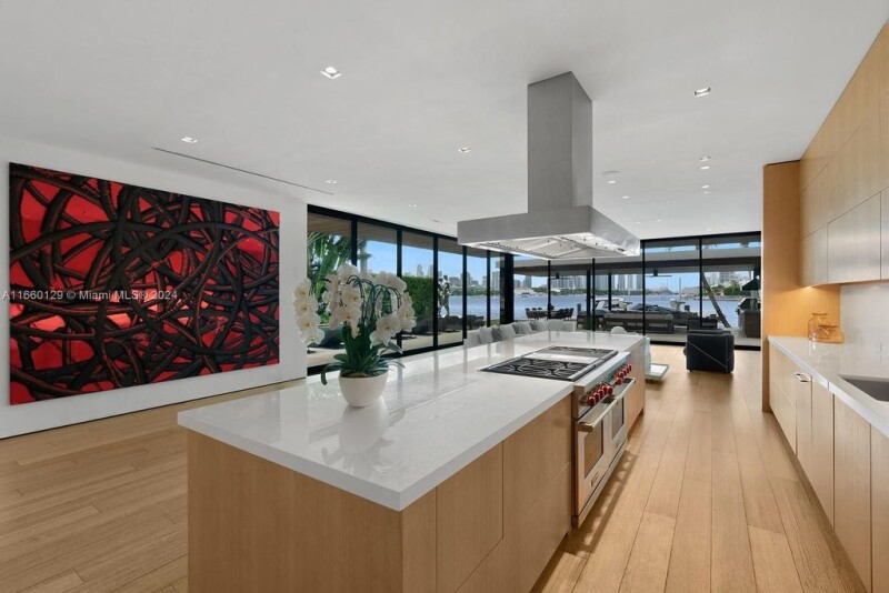 This Venetian Islands modern mansion has it all: Downtown views, Sunsets, incredible interiors, a lot & a half + 90 feet of water frontage. Three distinct social areas benefit from skyline exposure enhanced by 10’ telescopic windows. An integrated wood-paneled kitchen + oversized pantry complete the gourmet experience. The oak flooring on the main level leads upstairs where the picturesque Primary has it all: 2 closets, drench shower, deep soaking tub, book-matched marble, and an enviable view. The tropical pool, spa, cabana + Summer kitchen, ample green space, dockage for multiple boats & jet skis, and rooftop complete the outdoors. Draped in ipe and coral stone, a privacy gate and 2 car garage enhance the first appeal. Plus theatre, office, gas cooking, Jr. Primary, & spacious terraces.