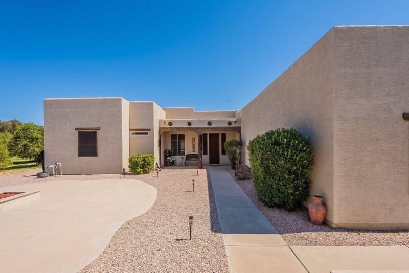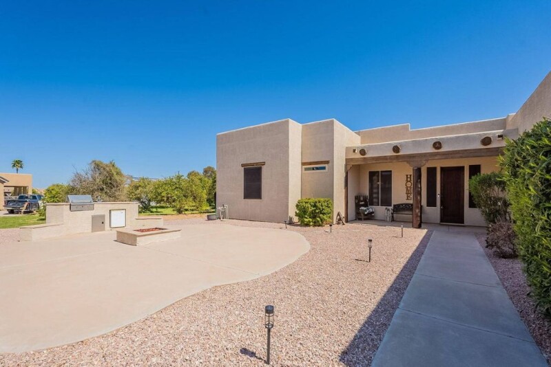 Amazing Dual Home Property on 1.175 acre Irrigated Orange Grove Lot! Located in a serene, no-HOA area, this property offers an ideal rural lifestyle & room for horses and RVs and a 28' depth garage. The main home offers 2,310 sqft & features 3 beds, 2 baths with finishes including granite countertops, upgraded cabinetry, and a spacious kitchen island with seating. Out back you'll enjoy your own private pool and spa—perfect for relaxation & entertaining. Adjacent to the main house is a detached, entirely separate 1,503 sqft home offering 3 beds & 2 baths. This versatile guest house adds ample living space and privacy for family or visitors. Between the two homes is a private courtyard area, ideal for intimate gatherings. Ever growing Shopping & Dining options nearby.