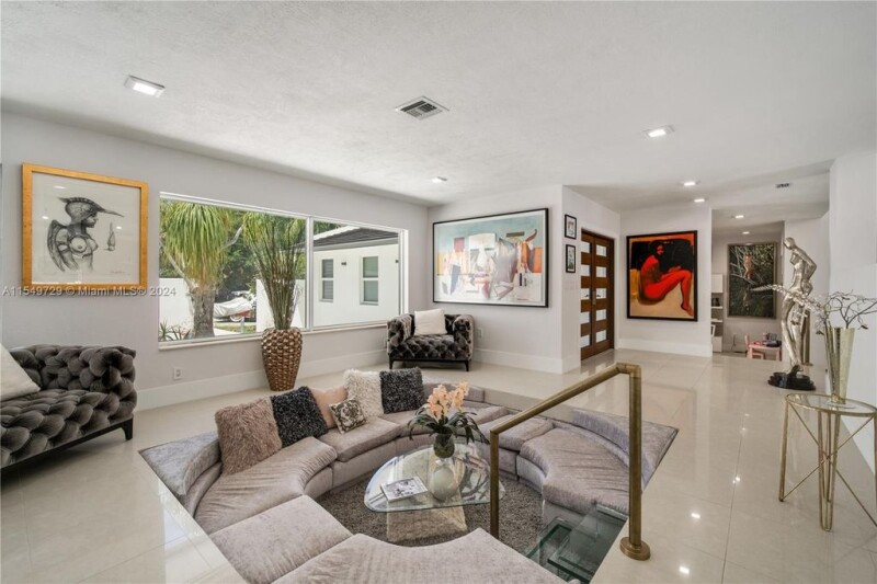 Gated circular driveway and concrete wall around the entire property! 42,906 s/f lot with 2-car garage. Enjoy this modern unique home that offers a spacious floor plan of 5,917 total s/f. 4 bedrooms and 3 bathrooms, plus huge office in main house and detached guest house with 2 bedrooms and 1 bathroom. High ceilings & porcelain floors throughout.