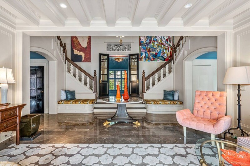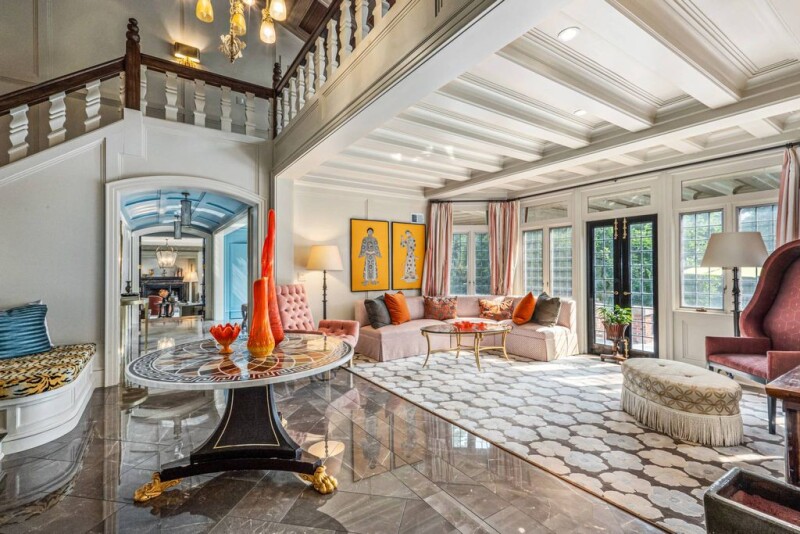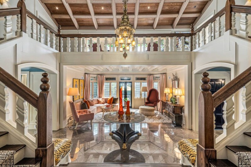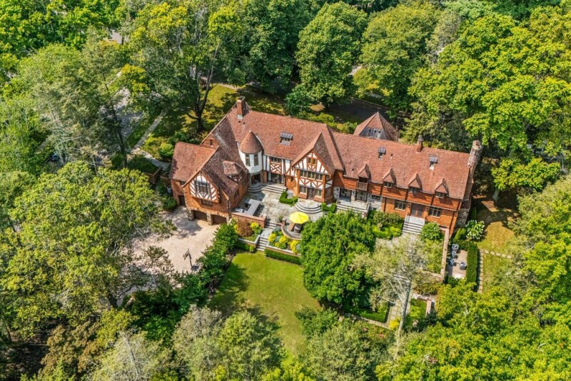 Great Neck, NY - Magnificent 7-bedroom Tudor estate, set on 1.0285 landscaped acres, completed in 1930 and exquisitely updated and dressed to perfection. Nestled within the University Gardens neighborhood (fees/dues). Expansive bluestone patio with built-in summer kitchen. Striking foyer with a grand bifurcated staircase and a soaring coffered ceiling. Principal rooms filled with natural light. Impressive formal living room, library/office, sophisticated dining room, kitchen with furniture-like custom wood cabinetry. There are 2 sumptuous primary suites with 5 additional luxurious bedrooms, spa-like baths with radiant heat and custom closets with fittings. Lower level features a spacious entertainer's recreation room, a theatre room, a gym, baths, a sauna, a laundry room and access to the three-bay attached garages. Smart Savant AV system, central vacuum, irrigation, landscape lighting.