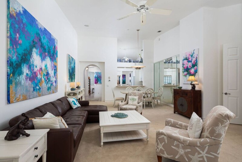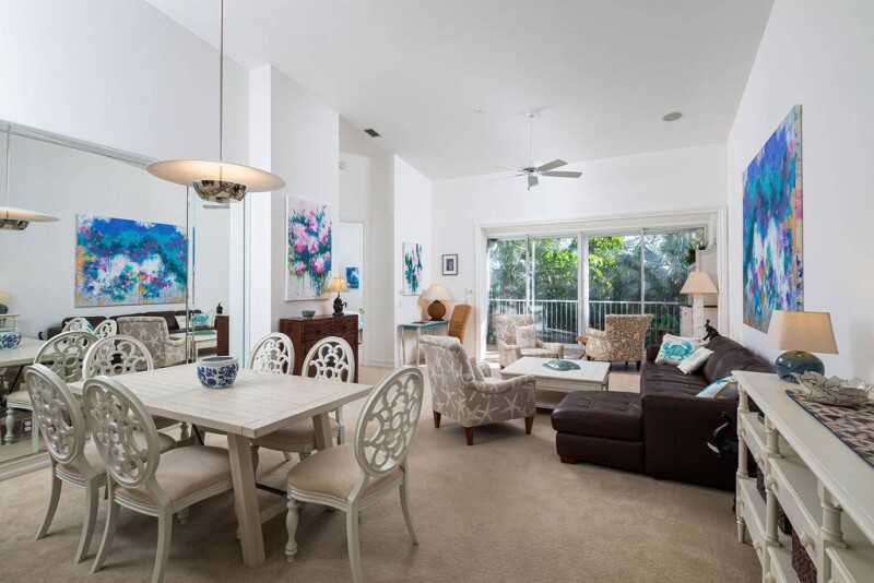 Treetop privacy describes this lovely Pelican Bay beauty. Sundrenched mornings are the signature of this residence offering eastern exposure, glassed-in lanai, and a fabulous location within Pelican Bay (walk to Pavilion, Mercato, the Pelican Bay Community Park and the world-class Pelican Bay fitness and tennis center). Soaring ceilings and light and neutral decor contribute to this condo living large! Super den is enclosable to become a true third bedroom and the massive two-car garage is the crowning jewel. Other features include glass enclosed lanai with electric hurricane shutters, extra storage room, separate laundry room in residence, common elevator to garage level, top floor with cathedral ceilings and open kitchen to great room. The Breakwater community is gated and offers a beautiful newly renovated clubhouse and has become known for its terrific new building renovations including new roofs and exterior paint and no flood damage to building during Ian. Pelican Bay residents also benefit from a myriad of five-star amenities including two fabulous newly renovated beachfront restaurants, tennis courts, biking and recreational trails and a state-of-the-art fitness and life center with a full gym, spin classes, yoga and more. Indulge in a lifestyle of elegance and sophistication in this Pelican Bay gem which is being offered Turnkey Furnished (excluding the original artwork).