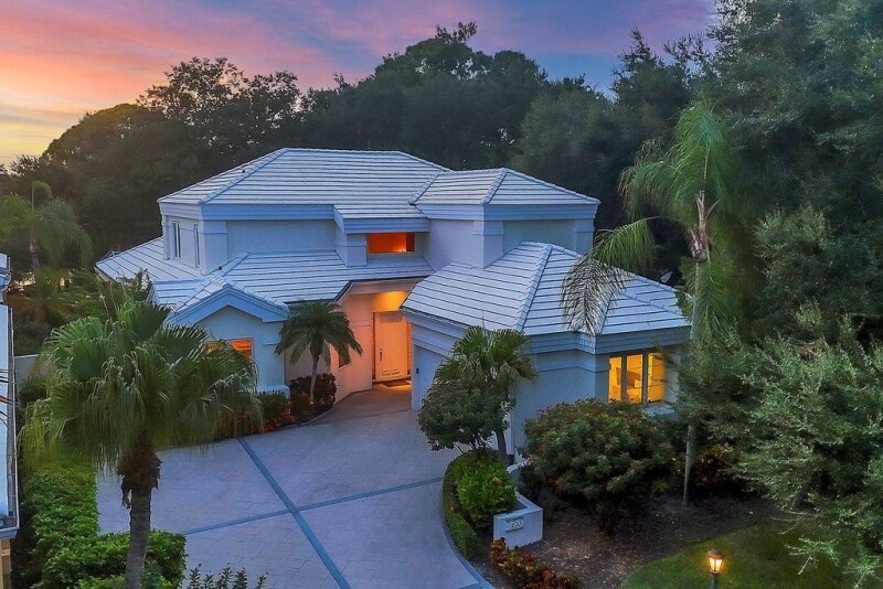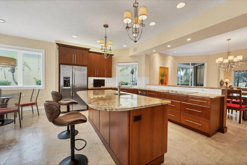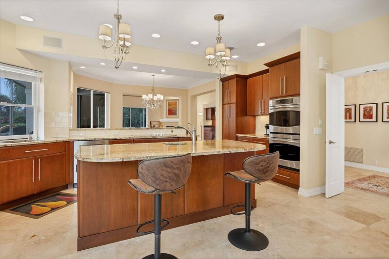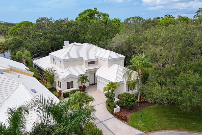 Experience the pinnacle of maintenance-free living in The Enclave at Prestancia. Behind the gates of this prestigious community, home to the renowned TPC Prestancia Golf and Social Club, this elegant single-family residence is thoughtfully designed to capture breathtaking views of the lake, preserve and golf course. The updated kitchen is a culinary dream, boasting abundant cabinetry, double islands, top-tier stainless steel appliances, a cozy breakfast nook and a functional workspace. The adjacent dining room, between the great room and kitchen, offers easy access to the lanai through sliding glass doors. The great room serves as the heart of the home, featuring a stone fireplace and soaring vaulted ceilings that lend a sense of openness and sophistication. Ideal for entertaining, the space includes a built-in bar and a wall of pocketing sliding doors that flood the room with natural light and open onto the expansive lanai. On the first floor, luxurious travertine flooring runs throughout, complemented by a convenient half bath near the entry. The spacious laundry room offers ample storage for everyday needs. The primary suite on the first floor is a tranquil retreat with vaulted ceilings, a cozy seating alcove and dual closets. The en-suite bath impresses with a large glass-enclosed shower, a luxurious soaking tub and an oversized vanity. Upstairs, two generous guest rooms, each with en-suite baths, provide privacy and comfort. A versatile bonus room offers endless possibilities, ideal for a playroom, home gym or study. Step outside to the wrap-around lanai with its paver deck, where the lush preserve and serene lake views create a picturesque setting for outdoor relaxation and gatherings. Additional highlights include a two-car garage and access to The Enclave's professionally maintained landscaping, irrigation and private community pool. Optional membership to the TPC Prestancia golf course further elevates the lifestyle, with world-class golfing just a short distance away. Conveniently near Siesta Key's stunning beaches, The Legacy Bike Trail, shopping, dining and all Sarasota has to offer, this home represents luxury living at its finest.