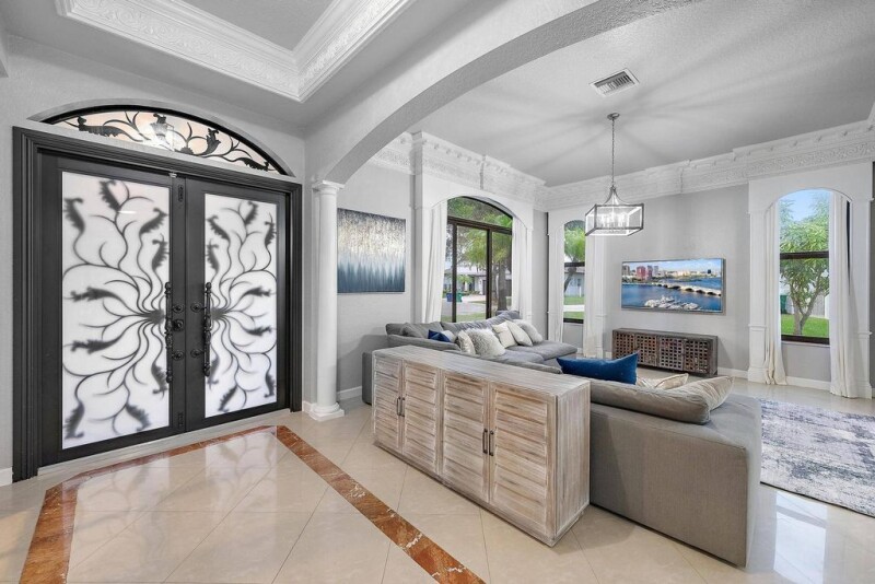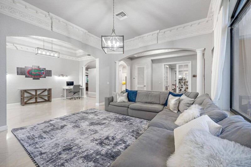 Welcome to this stunning, fully upgraded waterfront home in the prestigious community of Hibbs Grove Plantation! Situated on over half an acre, this spacious 4-bedroom 3-bathroom plus office/gym boasts a great spilt floor plan with tile floors and high ceilings throughout. Gourmet kitchen features granite countertops, a center island, double oven, and top-of-the-line appliances. Enjoy the beautifully landscaped backyard, complete with a heated pool, spa, Tiki hut, remote-controlled patio awnings, and multiple fruit trees. The home is equipped with hurricane impact windows and doors, Wi-Fi garage motors, and a state-of-the-art security system. Oversized driveway fits 6 cars. Beautiful, Gated community zoned for top A-rated schools, this home is perfect for both relaxation and entertainment!.