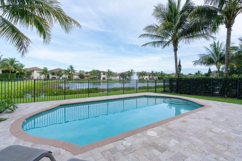 Somerset model on a lake lot and extra side yard easement, perfect for kids and pets. 4 Bed/4 Full Bath/Loft (or optional 5th bedroom) home w/ IMPACT windows/doors, offers gourmet chef's kitchen, porcelain tiles downstairs and elegant wood floors upstairs. Enjoy living outside on pool area and fenced in backyard with a relaxing view of the lake. Low HOA dues inclusive of incredible amenities: 24/7 guard at gate, restaurant, gym, resort style pool, playground, tennis, outdoor/indoor basketball, and beautifully designed clubhouse. Don't miss this opportunity! 1 mile to turnpike, Delray Marketplace, Wawa, Joseph's & more. Formal dining room, separate breakfast nook, master bedroom with double door entry and serene lake views.