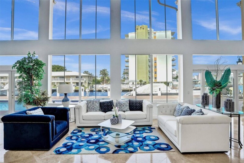 Calling all Mega Yachts! Rare to find 169' of linear dockage in this Intracoastal Point Lot with an additional 50' of Intracoastal frontage (219' total waterfront). True No Wake Zone. Wide canal at approximately 110'. Full 169' concrete dock. Dock up to 149' yacht today with the ability to get up to 160' with some dock enhancements. House built new in 2003 and offers massive sq footage. This home has all of the characteristics of a brand new home- high ceilings, an elevator, wide open space with tons of natural light. All Hurricane Impact doors and windows. Designed for todays living with 5 suites, home theatre and gym with built in steam room and sauna. Easy conversion to 3 car garage. 2 ensuite bedrooms first floor. Master offers private balcony overlooking the Intracoastal.