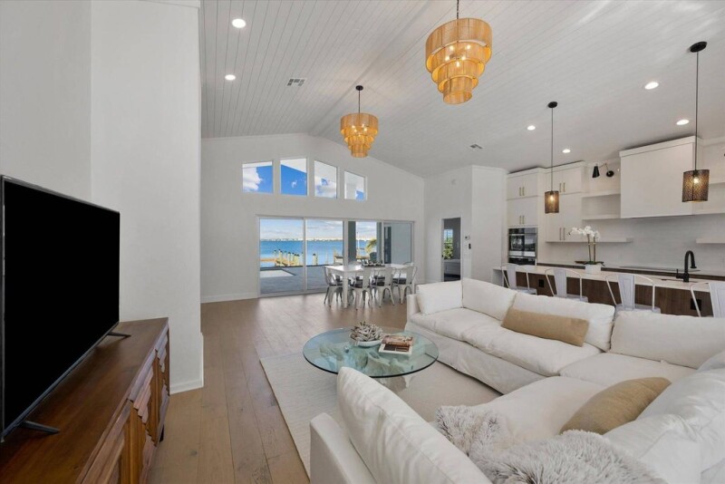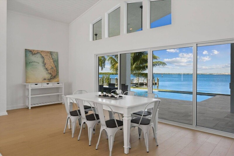 Impeccable newly renovated concrete block home with spectacular panoramic Intracoastal views of the blue water just steps away from the beautiful beaches! Everything is new: new metal roof, new impact windows and doors, new pool and deck, new flooring throughout, new kitchen, new bathrooms, new driveway, new outdoor living and pavers; move in ready! Other features include soaring high ceilings, open floorplan concept with great room, expansive gourmet kitchen with high quality coastal contemporary cabinetry, waterfall quartz countertops; beautiful and durable engineered wood flooring and all 3 new luxurious bathrooms. The interior opens up to the oversized covered patio overlooking the new heated salt water pool and the expansive blue water of the widest part of the Intracoastal, just a.