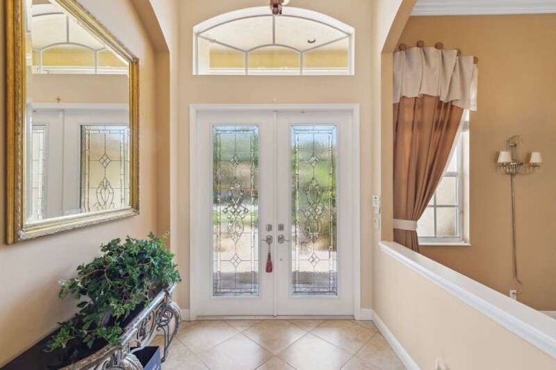 Step into elegance with this stunning home, featuring a grand foyer, custom window treatments, and exquisite crown molding. The sunlit living and dining areas showcase artist-painted ceilings, adding a touch of sophistication. The beautifully updated kitchen is a chef's dream, equipped with stainless steel appliances, double ovens, quartz countertops, and a custom granite island with a spacious breakfast bar.The expansive primary suite offers a private sitting area, two walk-in closets, and a spa-like ensuite with a double vanity. Enjoy breathtaking lake views from the screened-in patio, perfect for relaxing or entertaining. This exceptional home also includes impact windows, accordion shutters, a backup generator, and a spacious 3-car garage.Additional Highlights:.