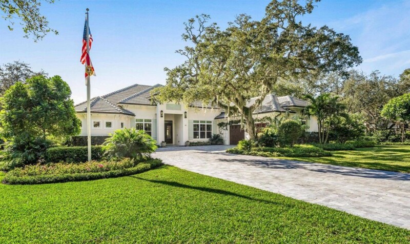 Exquisitely built in 2021, showcasing luxurious finishes and well-appointed details throughout this custom home. Timeless interiors feature a chef's kitchen, an inviting living room, and a gracious master suite. Settled on a meticulously landscaped .6+ acre lot, privacy reigns in the abundant outdoor living areas, complete with a resort-style pool and guest cottage. A NEW dock with a boat lift was installed at the end of 2024 for convenient Intracoastal access.
